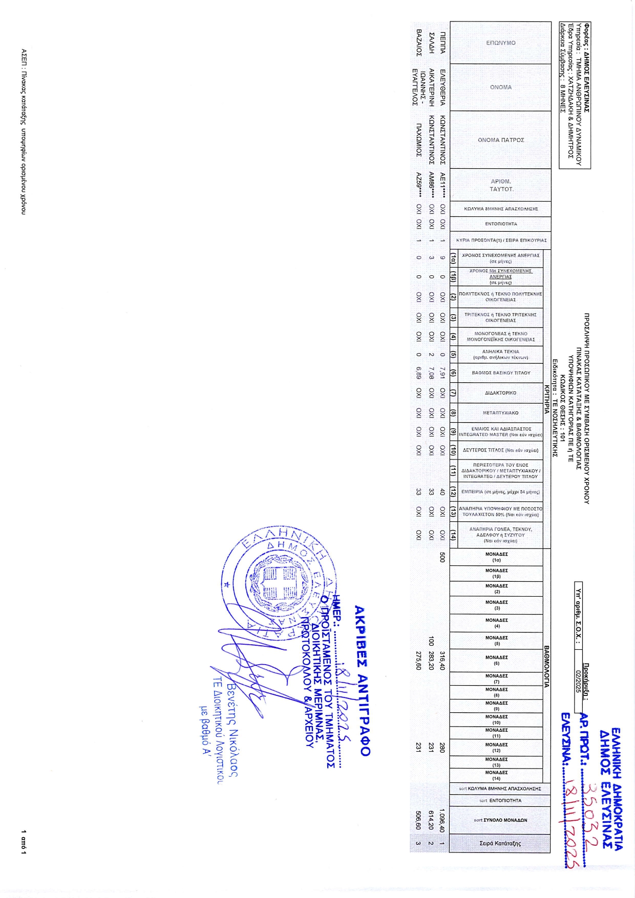 ΠΡΟΣΛΗΨΗ ΠΡΟΣΩΠΙΚΟΥ ΜΕ ΣΥΜΒΑΣΗ ΟΡΙΣΜΕΝΟΥ ΧΡΟΝΟΥ – ΠΙΝΑΚΑΣ ΚΑΤΑΤΑΞΗΣ & ΒΑΘΜΟΛΟΓΙΑΣ ΥΠΟΨΗΦΙΩΝ ΚΑΤΗΓΟΡΙΑΣ ΠΕ ή ΤΕ, ΚΩΔΙΚΟΣ ΘΕΣΗΣ: 101, ΕΙΔΙΚΟΤΗΤΑ: ΤΕ ΝΟΣΗΛΕΥΤΙΚΗΣ